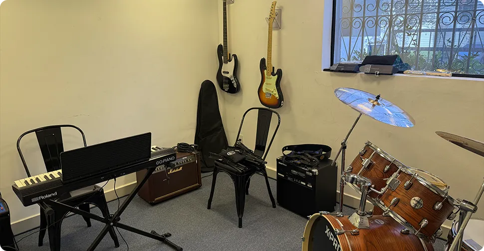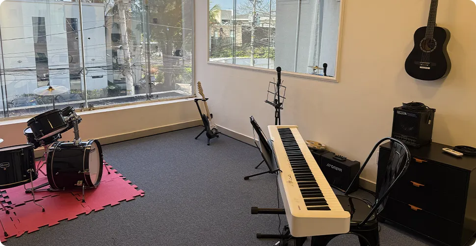 São 11 opções de cursos, incluindo violão, piano, guitarra, canto, bateria e musicalização infantil, com turmas desde bebês até adultos. Aqui, cada aluno aprende seu ritmo, explorando sua criatividade e talento com professores experientes e apaixonados pela arte de ensinar.